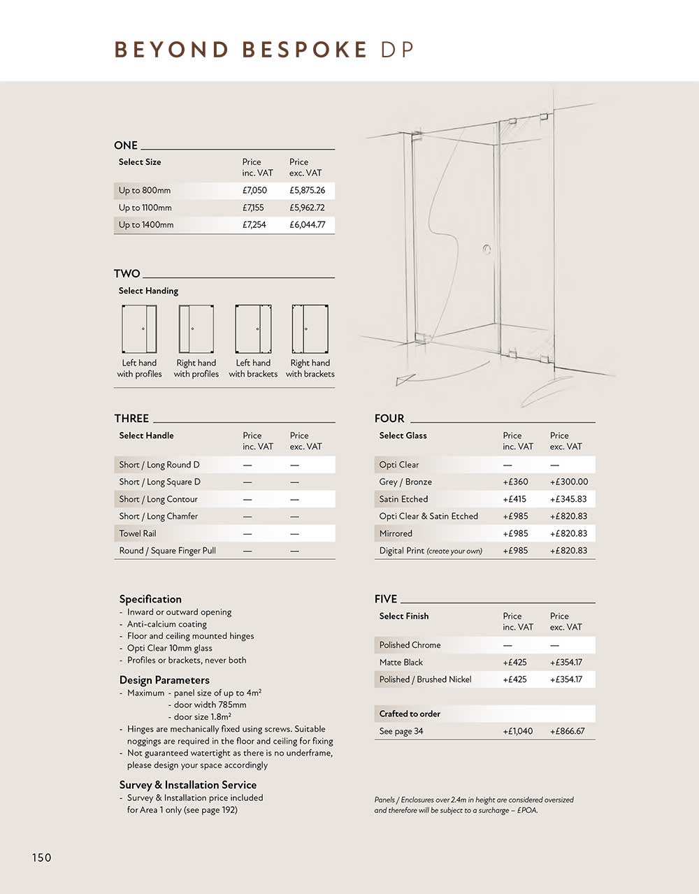 Choose from our range of glass, finishes and details below.