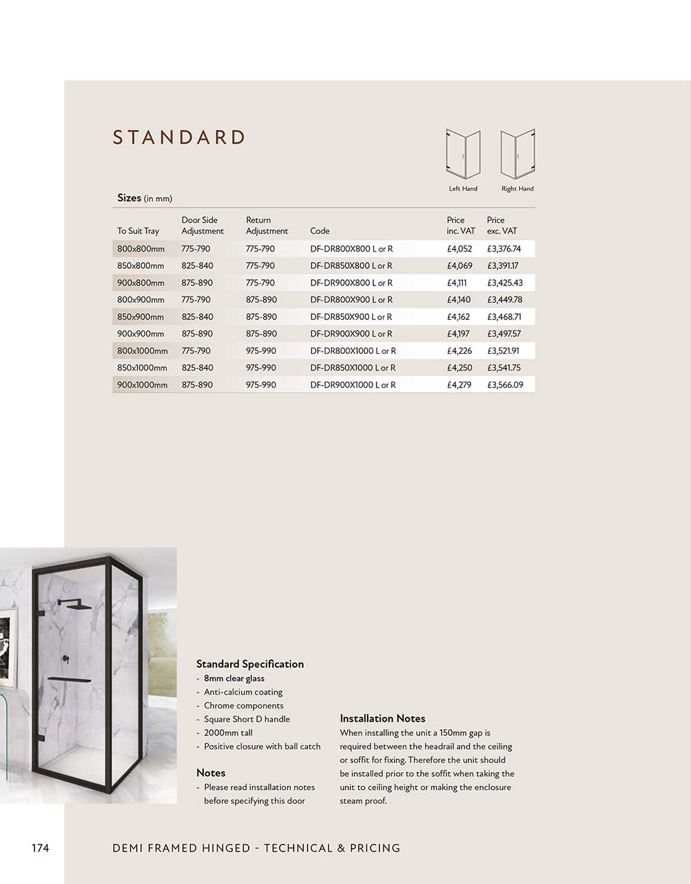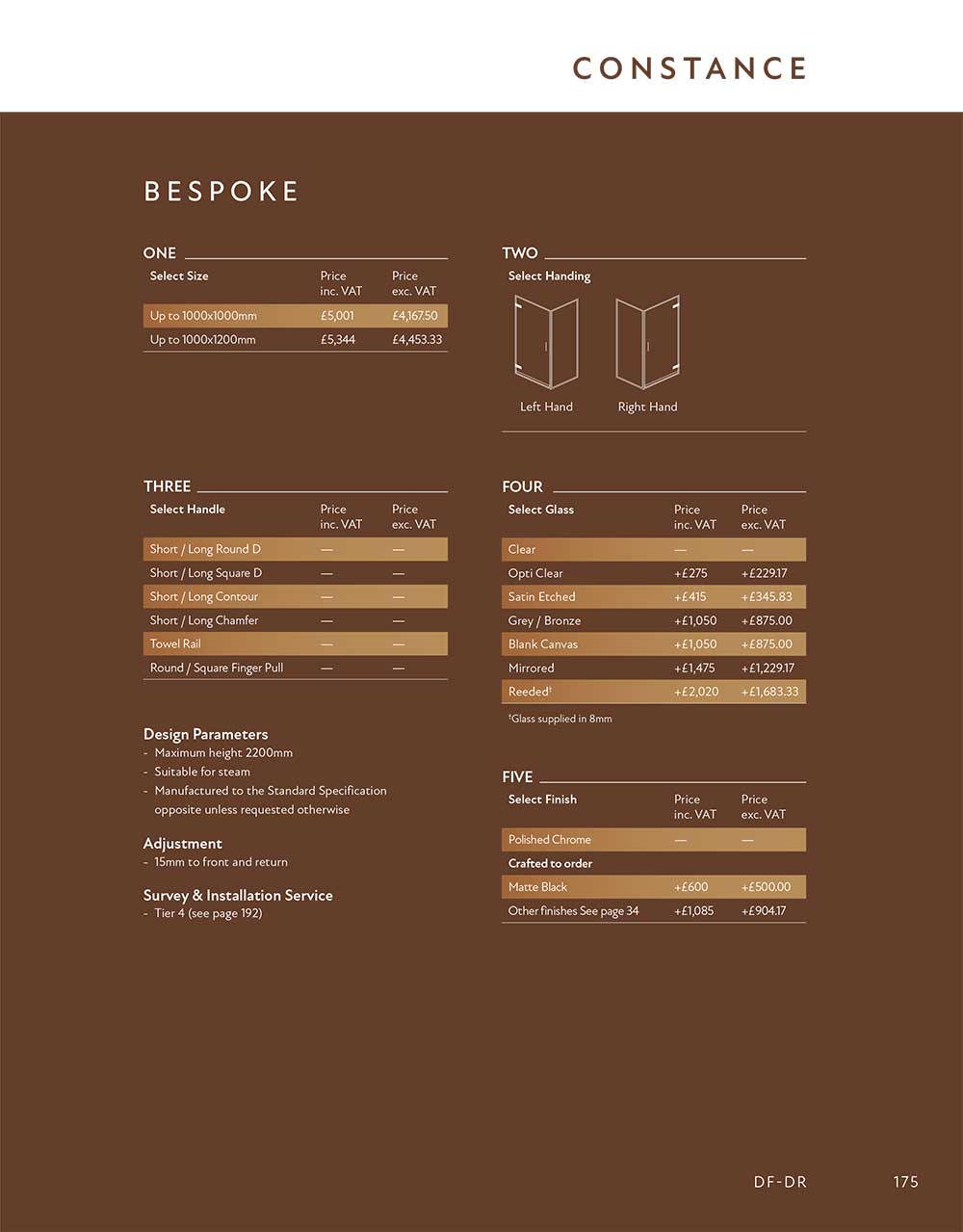 Shown Bespoke with matte black fittings and a long round D handle mounted horizontally. Choose from our range of handles, glass, finishes and details below.