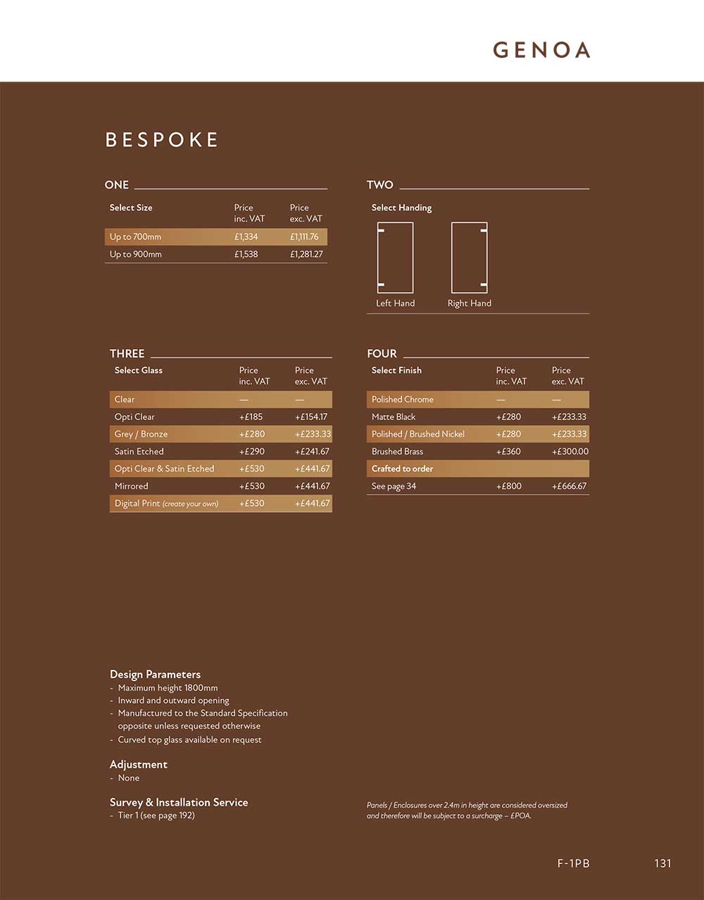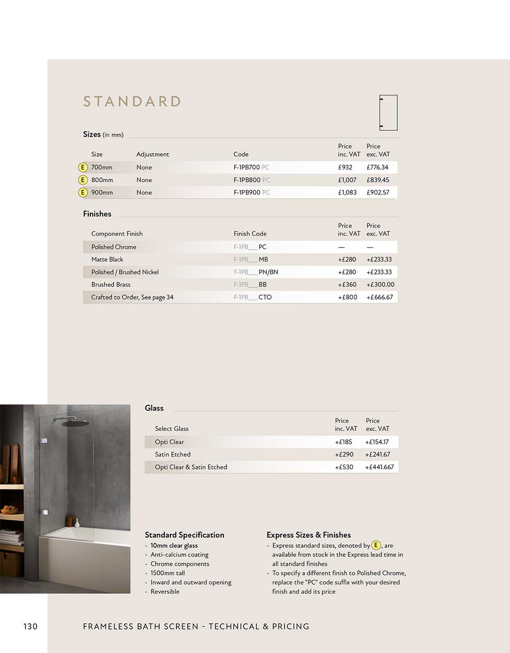 Shown Standard at a height of 1500mm with chrome fittings and clear glass. Choose from our range of glass, finishes and details below.