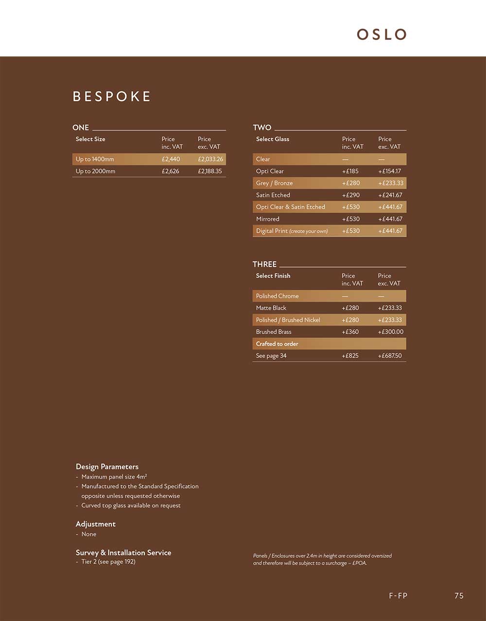 Choose from our range of glass, finishes and details below.